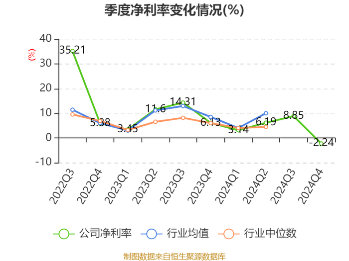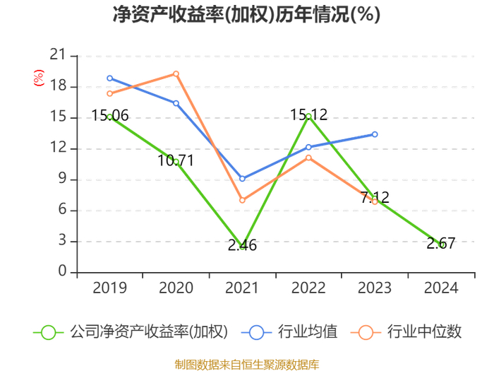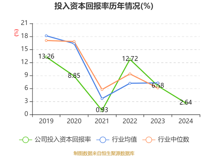数据显示,2024年公司加权平均净资产收益率为2.67%,较上年同期下降4.45个百分点。公司2024年投入资本回报率为2.64%,较上年同期下降3.94个百分点。