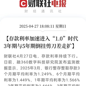 融360数字科技研究院发布监测数据显示,2025年3月,银行整存整取存款3年期平均利率为2.042%,5年期平均利率为1.883%,3年和5年的存款利率剪刀差进一步加大。