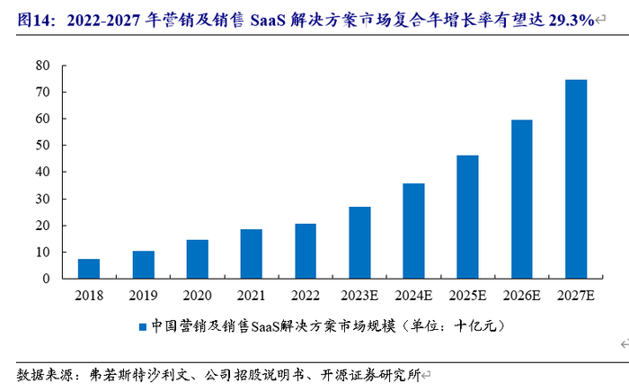 2、 营销及销售SaaS市场空间广阔,公司竞争优势突出