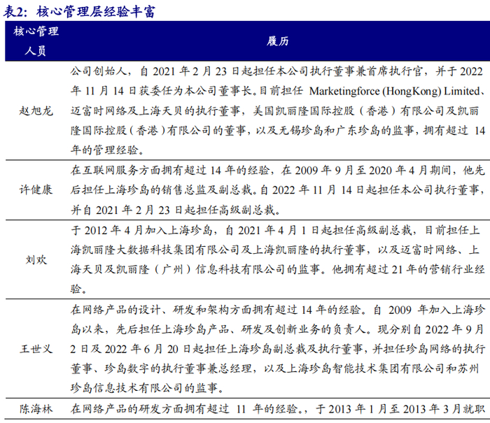 公司董事长兼CEO赵旭龙先生为公司创始人,长期深耕营销行业。自公司成立以来,赵先生一直领导公司业务,并主要负责作出公司的战略及关键决策,包括整体发展、战略方向、业务管理、创新及研发等决策。