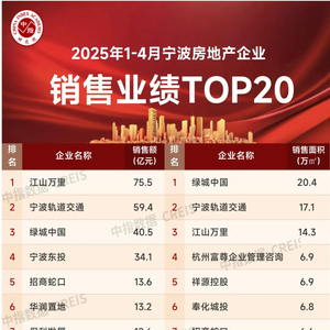 2025年1-4月宁波房地产企业销售业绩排行榜