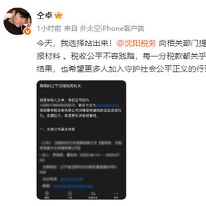 4月29日,演员仝卓发布微博实名举报33家关联公司偷税漏税: