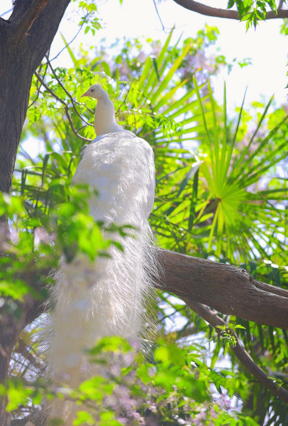郑州市动物园鸟语林孔雀随处可见,除了绿孔雀,还有少数白孔雀。它们或独自梳妆,或引吭高歌,或开屏求爱,寻觅如意配偶。此时的雄孔雀频频开屏,尽情展现自己美丽的尾屏,尤其是有心仪的雌孔雀在身边时,雄孔雀开屏就更卖力了,它们会围着雌孔雀转着圈的开屏,还会抖动羽毛发出“沙沙沙”的声音,使出浑身解数来俘获雌孔雀的芳心。