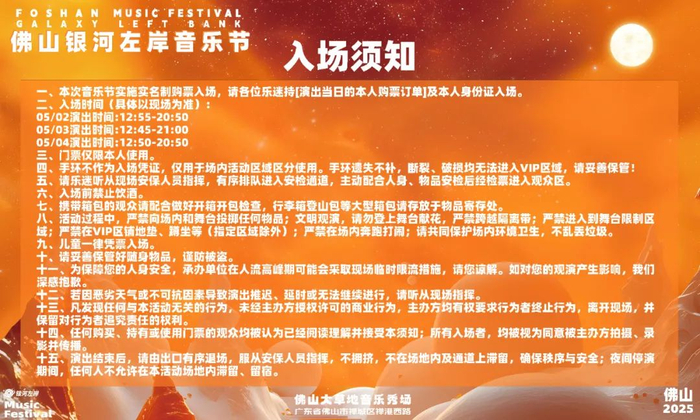 5月2日至4日,“2025佛山银河左岸音乐节”活动在佛山大草地音乐秀场举行。为确保活动期间现场周边道路交通安全有序,交警部门将对周边道路适时实施临时交通管制措施。