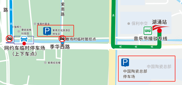 为方便市民前往活动现场,周边设置有两个大型停车场: