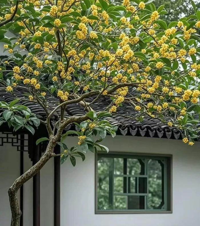 因此古代的富贵人家都会在庭院中种植桂花树,寓意家族富贵绵延、世代昌盛。而到了现在,许多农村家庭,也会在门前栽种几株桂花树,寓意金贵当庭,吉祥一生。