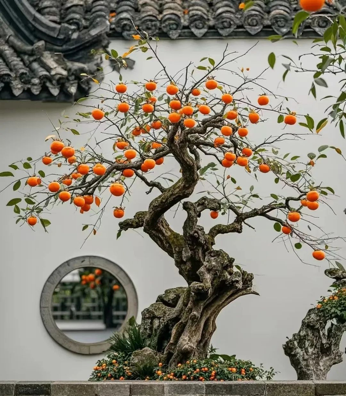 而柿子成熟后,宛如一个个红灯笼挂满枝头,极具视觉冲击力。因此柿子树也寓意着生活红红火火、事业蒸蒸日上。在商业场所摆放柿子盆景,或种植柿子树,有招财进宝、生意兴隆之意。