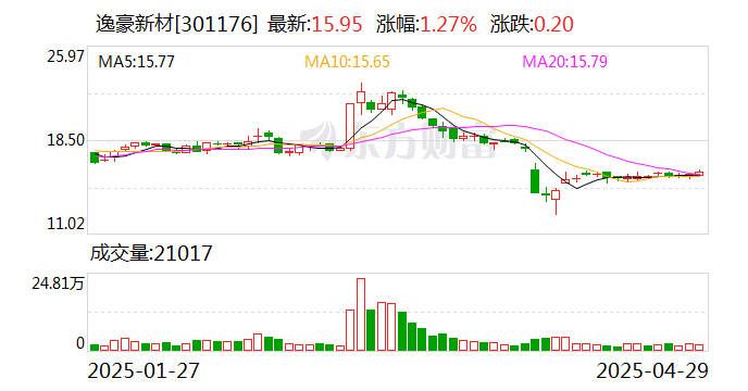 本报讯 (记者曹琦)近日,赣州逸豪新材料股份有限公司(以下简称“逸豪新材”)公布2025年一季报,公司营业收入为3.6亿元,同比上升17.1%。