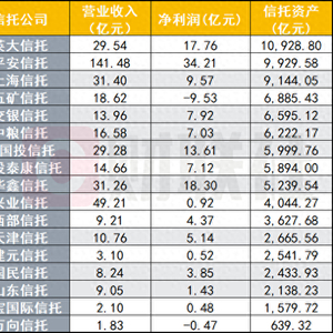 17家信托公司营收数据涨跌参半,头部效应有所加强
