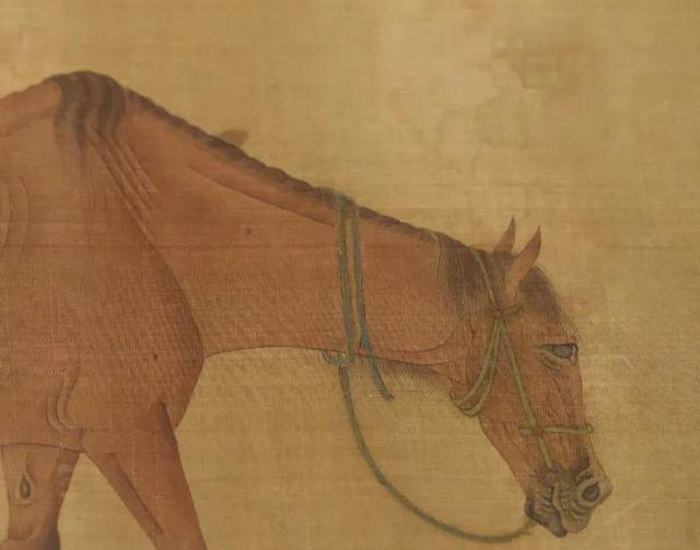 元代任仁发《二马图卷》绘二马,前一匹毛色棕白相间,身形健硕,虽头戴缰绳,但昂首挺胸,步履矫健,似正要起势奔腾;后一匹马则低头耸肩,瘦骨嶙峋,肋骨分毫毕现,颇有老态龙钟之感。