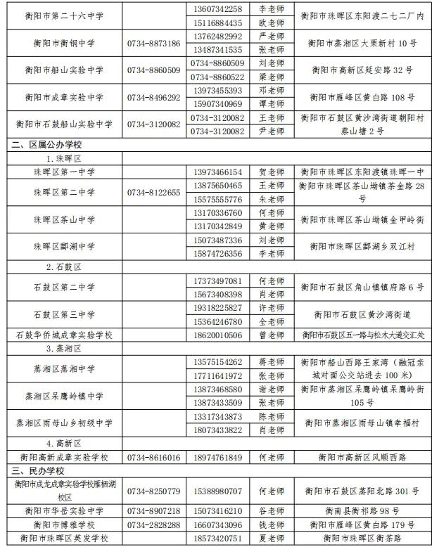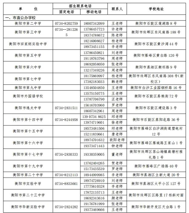 2.衡阳市中心城区教育局招生联系电话汇总表