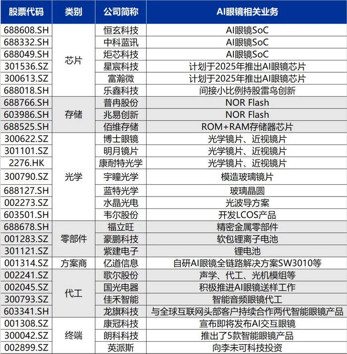 AI+眼镜:博士眼镜、亿道信息、明月镜片;