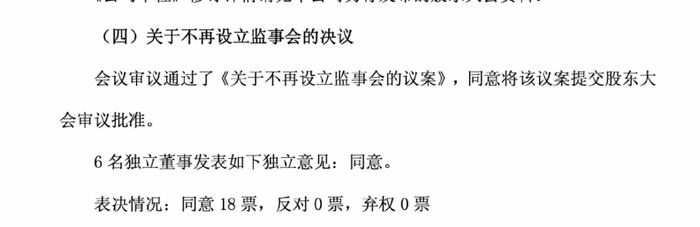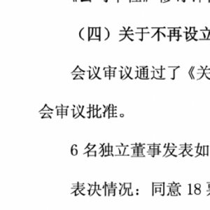 4月29日晚间,交通银行公告称,董事会审议通过《关于不再设立监事会的议案》,同意将该议案提交股东大会审议批准;建设银行公告显示,关于不再设立监事会的议案表决情况为全票通过。本项议案的相关事项将提交该行股东大会审批,详情将于股东大会通函中披露。