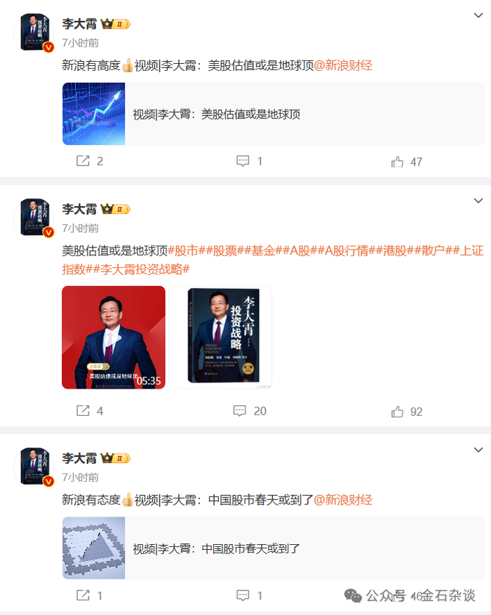 此外,李大霄还因为婴儿底、少年底等言论刷屏。