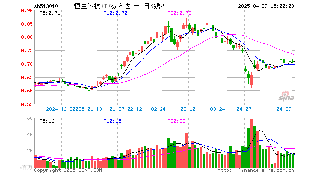 4月29日恒生科技ETF易方达(513010)份额减少1.00亿份,最新份额171.32亿份,最新规模120.32亿元