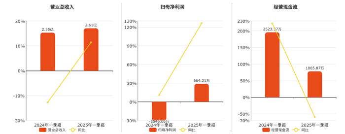 公司营业总收入为2.61亿元,在已披露的同业公司中排名第28。归母净利润为664.21万元,在已披露的同业公司中排名第29。经营活动现金净流入为1005.87万元,较去年同报告期经营活动现金净流入减少1517.49万元,同比较去年同期下降60.14%。
