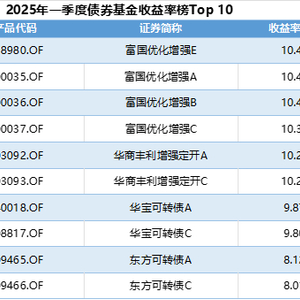 此外,头部基金公司的可转债基金产品表现突出。2025年一季度收益率排名前十的产品中,华宝可转债A(240018.OF)、富国优化增强A(100035.OF)等基金净保持了高增长,主要配置新能源、高端制造等高景气行业转债,叠加杠杆策略放大收益。