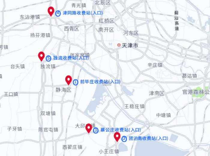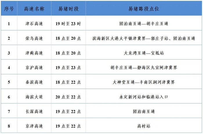 若京津高速高村站拥堵,可在泗村店东驶出高速,进入武清中心城区,通过杨北公路,从京津塘高速杨村站重新驶入高速公路前往北京。