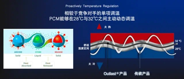 Outlast的PCM(相变材料)技术最初由美国宇航局(NASA)于20世纪80年代研发,旨在解决宇航员在极端温差下的生存难题。其核心原理是通过相变微胶囊(mPCM)动态调节温度,可以吸收、储存并释放热量,确保人体处于恒温状态。这项技术被太空基金会认证为“经认证太空技术”(Certified Space Technology™),并曾获法国科学院“改变未来生活的15项创新”大奖。这家掌握NASA相变材料(PCM)专利的公司,曾让苹果、耐克、哥伦比亚等一众国际品牌垂涎三尺。