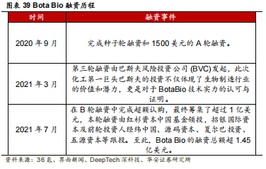Bota Bio(恩和生物)是国内合成生物学领域的初创公司,作为上游技术层企业,通过与多家行业内公司建立合作、实现技术商业化落地。公司的核心团队均来自 Amyris、GinkgoBioworks、Codexis 等国际顶尖生物合成公司,具有深厚的产业背景。2022 年 8 月 25 日,Bota Bio 与 Medichem——专注药物活性成分(API)及成品制剂(FDF)工艺开发与制造的综合型制药公司——正式宣布开启商业开发合作,共同推进两个高价值 API 项目。Bota 负责开发新型酶,以高效催化和可持续化的生产方式,最大程度地降低生产过程中对昂贵试剂和中间体的需求。Medichem 将在西班牙和马耳他的工厂负责 API 的研发、扩产、制造以及市场运营。2023 年 8 月,Bota Bio 与安捷伦签订战略合作协议,双方将进一步加强多形式、多层次的资源共享及技术交流,共同探索合成生物领域上下游新兴技术开发与应用。