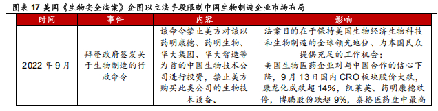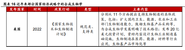 另一方面,海外政策也影响着全球生物制造市场,直接或间接地影响国内合成生物学企业下游需求。美国《生物安全法》以美国国家安全为由,企图以立法手段干预正常市场秩序,限制中国生物制造企业出口,从而扩大美国本土公司在基因测序领域的垄断态势。截至 2024 年 12 月 7 日,美国参众两院推动《生物安全法案》进入 2025 财年 NDAA 以期尽快完成立法程序的意图受阻,但法案是否会落地、以何种形式对合成生物学企业产生影响,仍具有不确定性。基于市场对美国生物医药行业或将减少对中国供应链依赖的恐慌,这项法案自诞生以来已数次导致国内 CRO 板块股价异动。此种妨碍公平竞争的法律法规将促使中国政府加速国内生物制造市场拓展、配合供给端国产替代,进一步完成合成生物学产业完整、健康的价值循环。