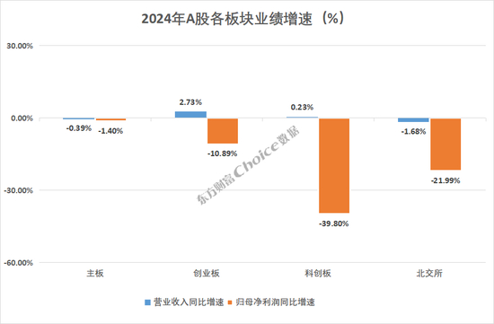 整体来看,创业板营收增速更高,达2.73%;科创板盈利增速下降最大,同比下降39.8%。