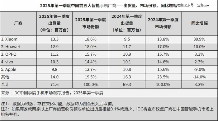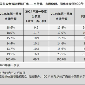 最近,2025年*季度智能手机的出货量、销量排名陆续放榜。