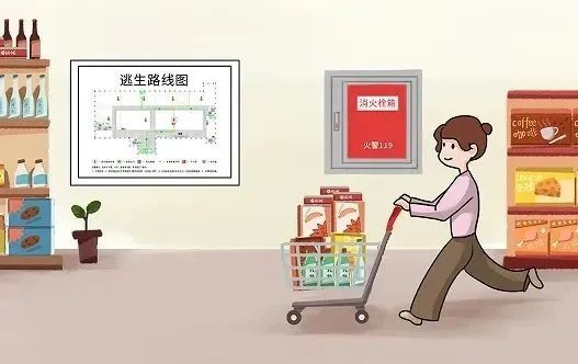 十四、外出购物、聚餐、娱乐、住宿时,要留意场所疏散通道、安全出口位置,了解灭火器、防烟面罩等自救逃生器材存放位置和使用方法。