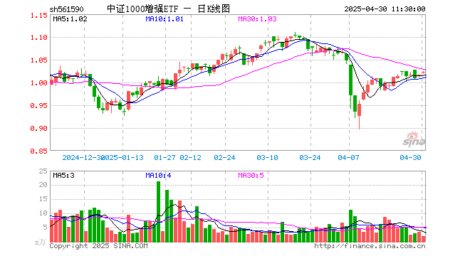 中证1000增强ETF(561590)涨0.69%,半日成交额197.61万元
