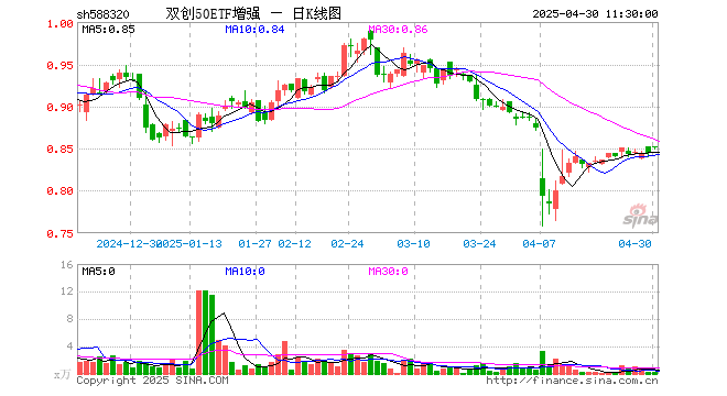 双创50ETF增强(588320)涨0.83%,半日成交额17.66万元