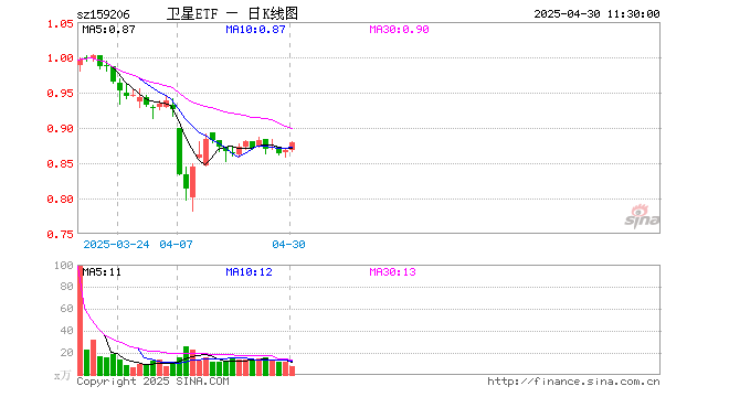 4月30日,截止午间收盘,卫星ETF(159206)涨1.27%,报0.879元,成交额697.30万元。卫星ETF(159206)重仓股方面,中国电信截止午盘跌0.26%,中兴通讯涨1.81%,中际旭创涨0.77%,新易盛跌0.12%,中国卫星涨0.67%,国盾量子涨1.59%,复旦微电跌0.04%,上海瀚讯涨4.32%,电科芯片涨0.08%,华力创通涨1.66%。