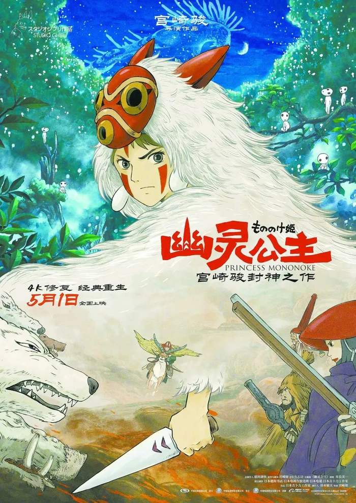 进口片中,宫崎骏经典动画《幽灵公主》将以4K修复的形式首次登陆国内院线,该片于1997年首映,探讨了人与自然和谐相处的主题。