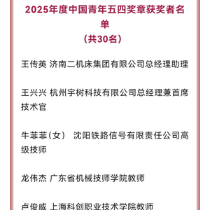 授予王传英、王兴兴、牛菲菲等30名同志2025年度中国青年五四奖章;