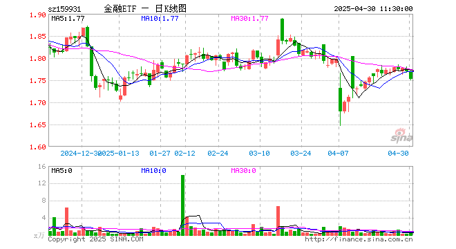 4月30日,截止午间收盘,金融ETF(159931)跌1.02%,报1.752元,成交额66.24万元。金融ETF(159931)重仓股方面,中国平安截止午盘涨0.16%,招商银行跌3.10%,兴业银行跌1.24%,东方财富涨0.78%,中信证券涨0.64%,工商银行跌3.58%,国泰海通涨0.23%,交通银行跌2.11%,农业银行跌3.40%,江苏银行跌1.83%。