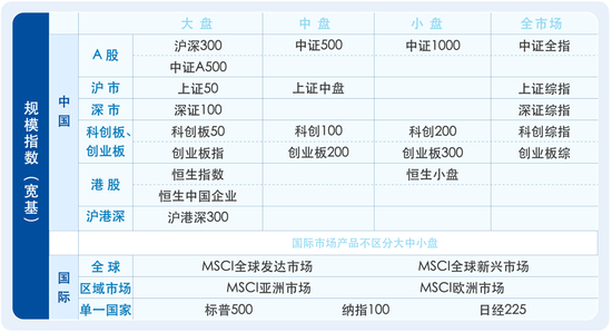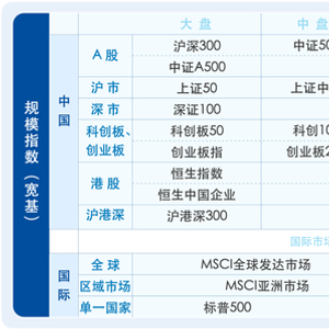 资料显示,海外通常将能代表“国内或国际股票市场整体表现”的指数定义为宽基,在他们看来,小盘、中盘指数等不属于宽基指数。但国内通常将规模指数统称为宽基。