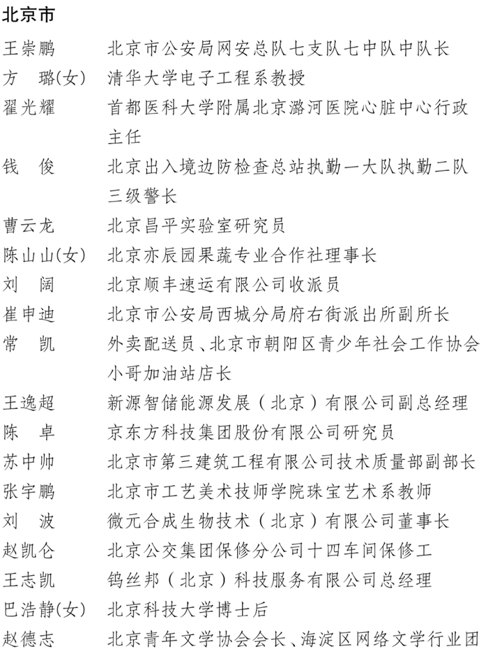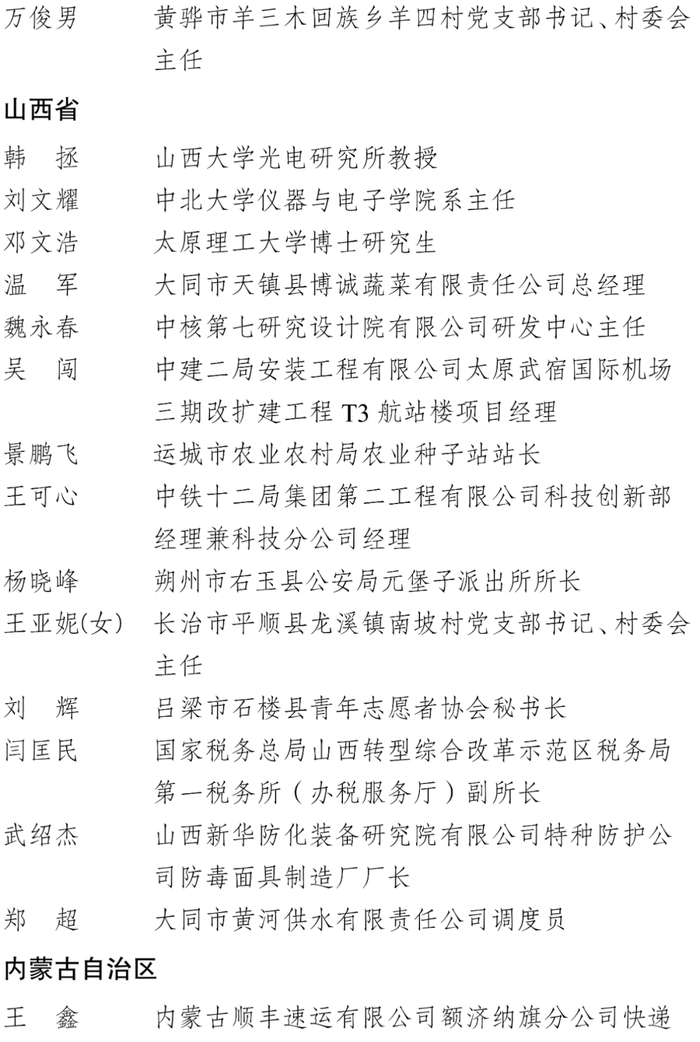 1. 2025年度中国青年五四奖章获奖者名单