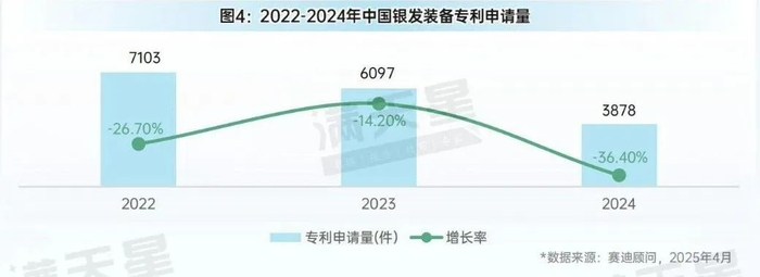 2022-2024年,中国银发装备领域的技术创新活力稍显欠缺,年度专利申请量呈现出递减态势,由7103件逐步下滑至3878件。尽管养老、康养等关联产业已迈入商业化发展轨道,然而能够切实转化为具体产品或服务的成果占比却相对较低,这一状况一定程度上对银发装备市场的发展形成了制约。