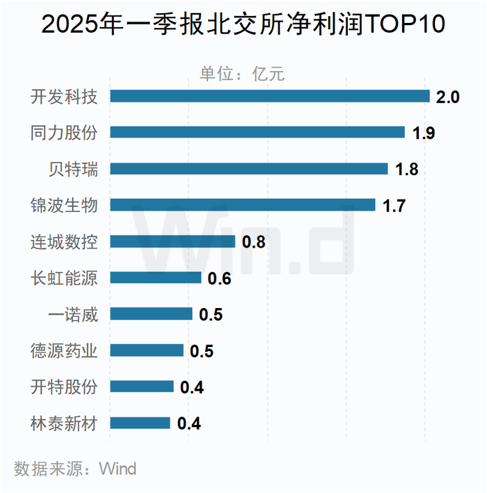 北交所方面,开发科技以2亿元的净利润位居第一。