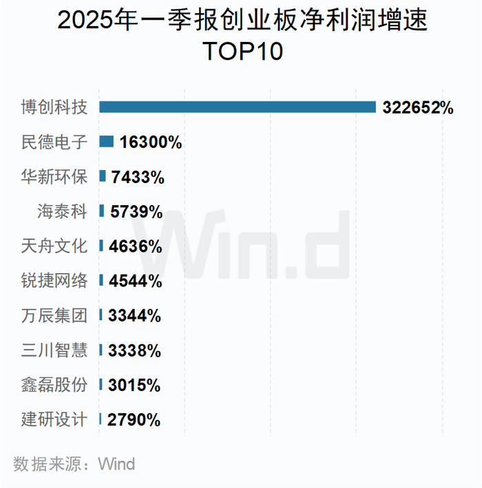 创业板企业中,前10名净利润增速均超过20倍,博创科技位居第一。