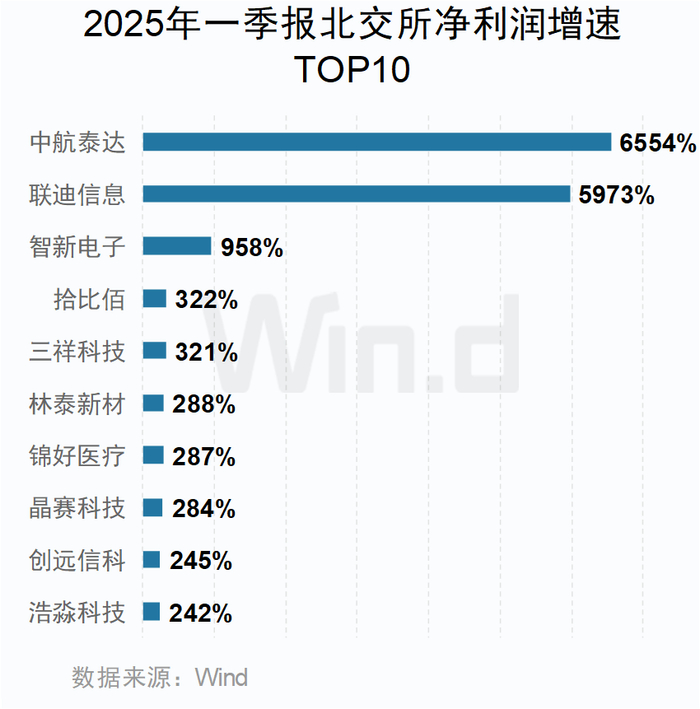 北交所企业中,中航泰达以近66倍的净利润增速位列第一。