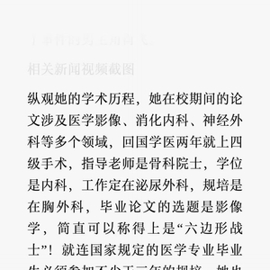 她在校期间的论文涉及医学影像、消化内科、神经外科等多个领域,回国学医两年就上四级手术。