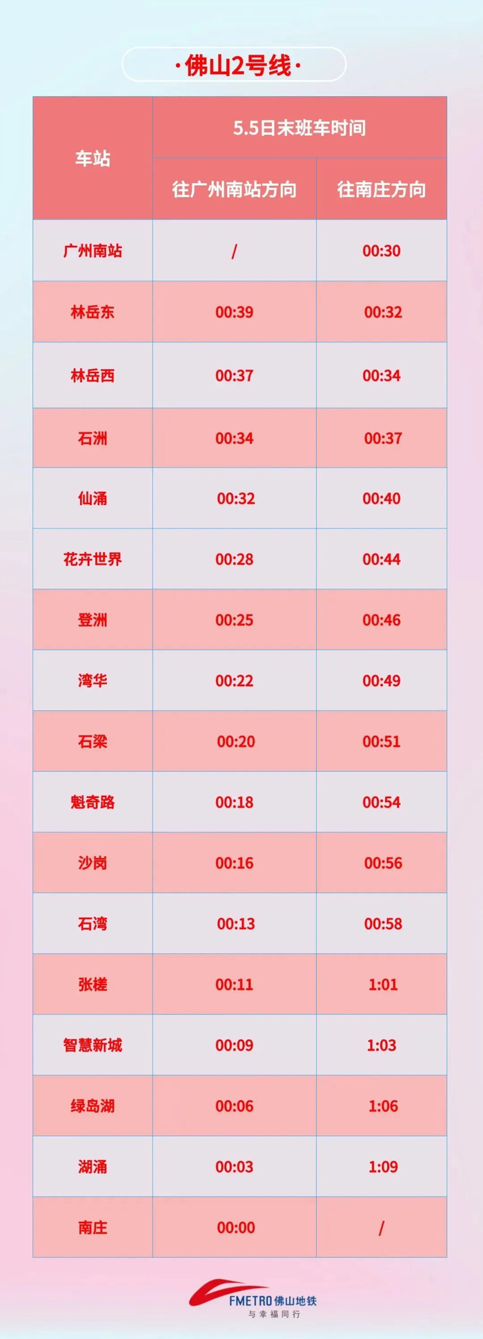 此外,为匹配市民出行需求,5月1日二号线嘉禾望岗往广州南站方向提早30分钟运营。