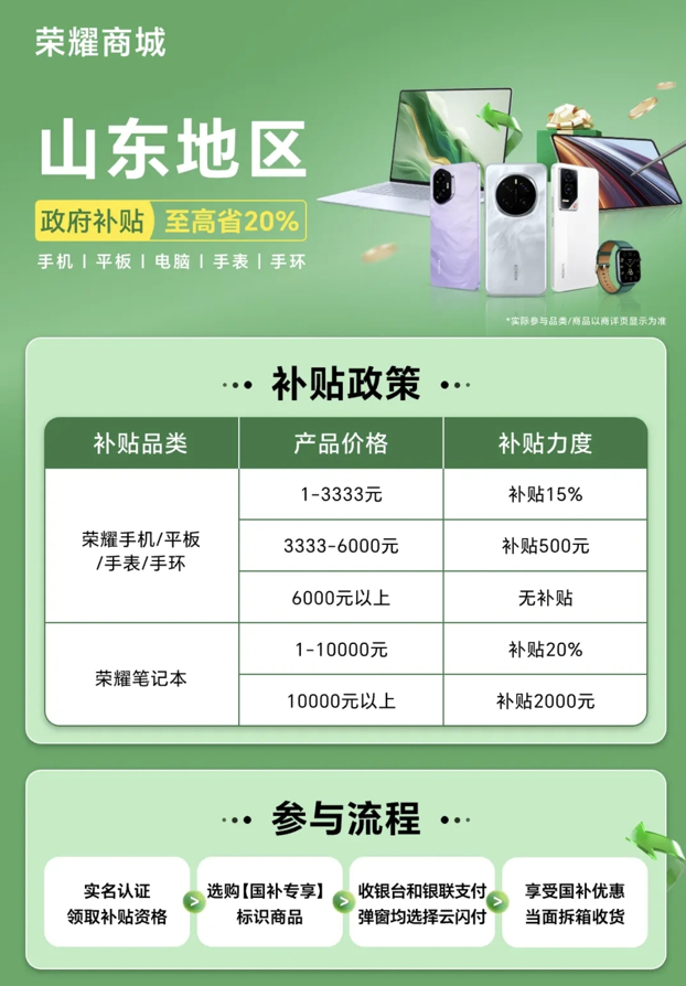 (领取路径:荣耀商城首页,点击政府补贴处“立即查看”,选择“山东”)