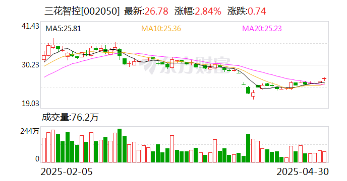 三花智控一季度归母净利润9.03亿元 同比增长39.5%