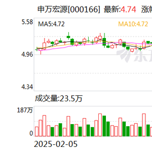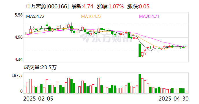 本报讯 (记者周尚伃)4月29日晚间,申万宏源集团股份有限公司(以下简称“申万宏源”)发布2025年一季度业绩,实现合并营业收入54.79亿元,净利润22.47亿元,同比增长35.62%;全资子公司申万宏源证券实现归母净利润22.06亿元,同比增长36.76%。总体来看,一季度,申万宏源积极应对市场变化,扎根主业,聚焦转型,把握机遇,经营业绩稳中有升。