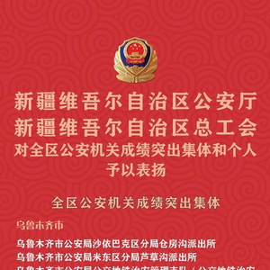 在“五一”国际劳动节来临之际,新疆维吾尔自治区公安厅、新疆维吾尔自治区总工会对全区公安机关50个成绩突出集体和100名成绩突出个人予以通报表扬。
