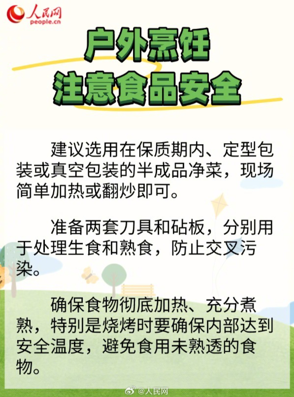 “五一”假期即将到来,阳光正好,微风不燥,你要去野餐吗?需要注意的是,露营野餐看似惬意,背后却隐藏着“病从口入”的风险。如何做到安全饮食?为此,人民网采访了首都医科大学宣武医院营养科主任医师李缨。