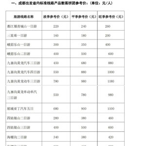 对于多日游产品,价格差异更为明显。以九寨沟黄龙为例,汽车三日游淡季价格为450元/人,旺季则高达880元/人;若选择动车三日游,价格范围在550元至980元/人之间。稻城亚丁作为高端景区,五日游线路淡季680元/人,旺季则达到1100元/人。