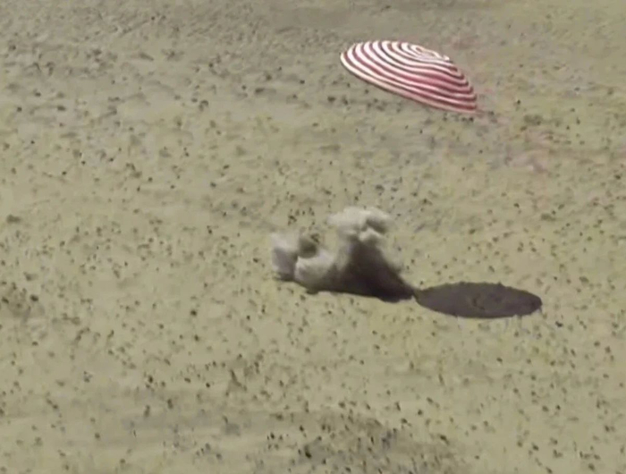 神舟十九号返回舱着陆瞬间(央视新闻)
