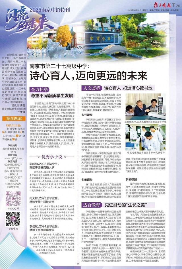 【闪亮的未来】南京市第二十七高级中学:诗心育人,迈向更远的未来